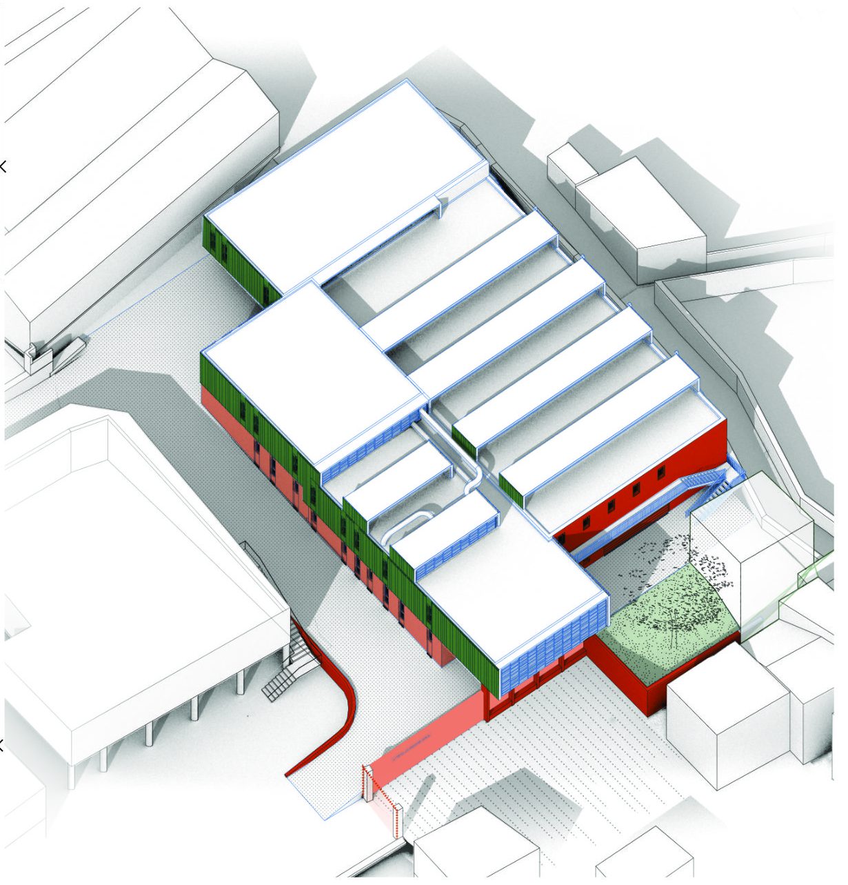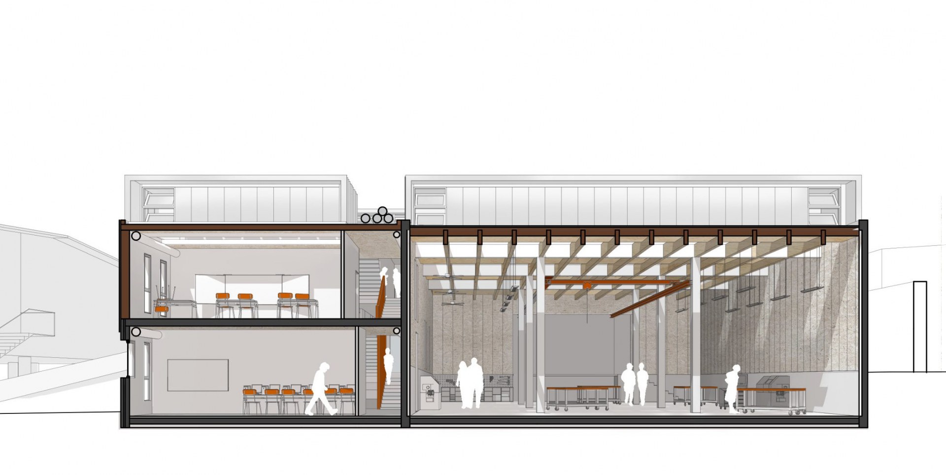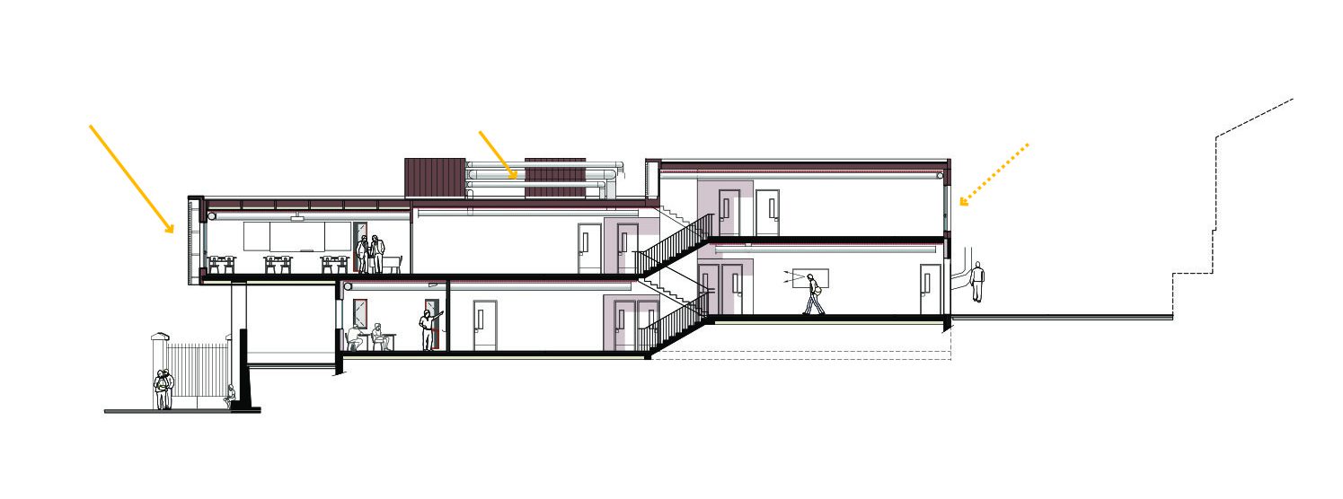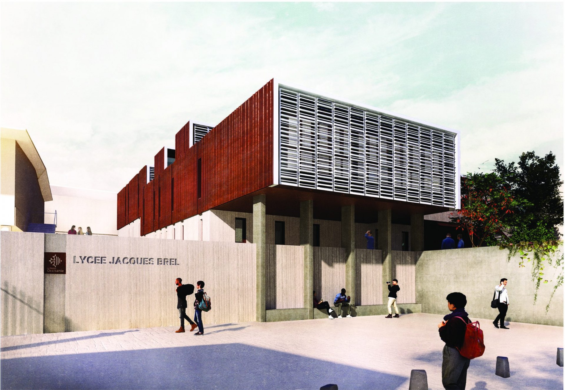 Une matérialité durable en vitrine des savoir-faire du lycée: la noblesse des métiers manuels et la motivation palpable des enseignants et des apprenants retrouvent, par ce projet, dans un bâtiment simple et sobre, un outil prêt pour l’avenir. Il propose un cadre de travail et d’expression confortable et élégant.