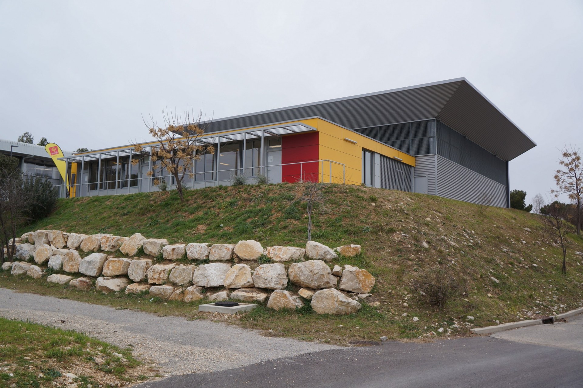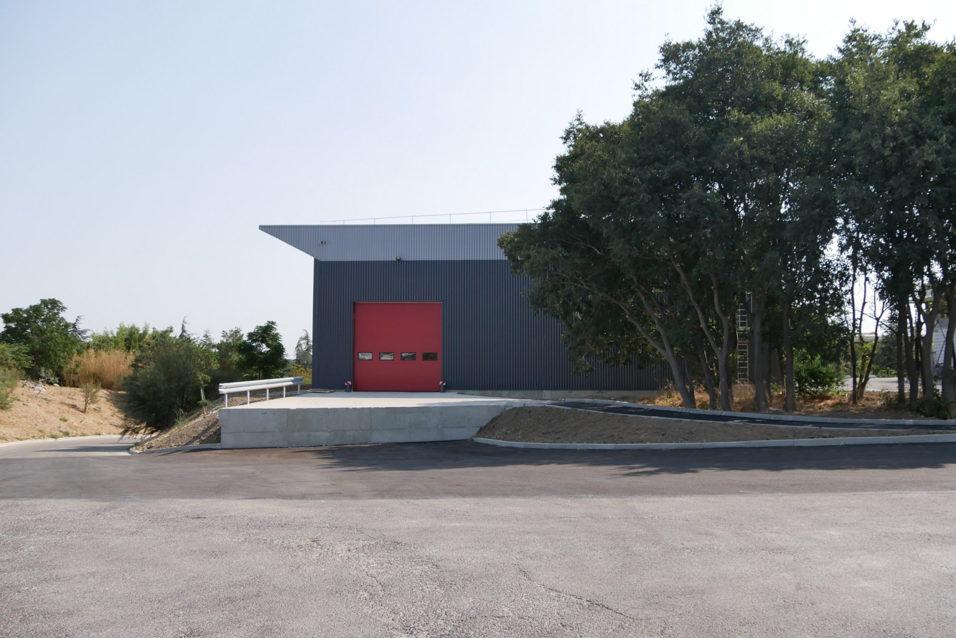 Création d’un bâtiment comprenant un hangar (420m² SDO) PL et VL avec quai, des vestiaires et des salles d’enseignement (230m² SDO), pour une section bac pro Conducteurs Transport Routier de Marchandises. Aménagements de plateformes, rampes et circulations extérieures (600m²).
