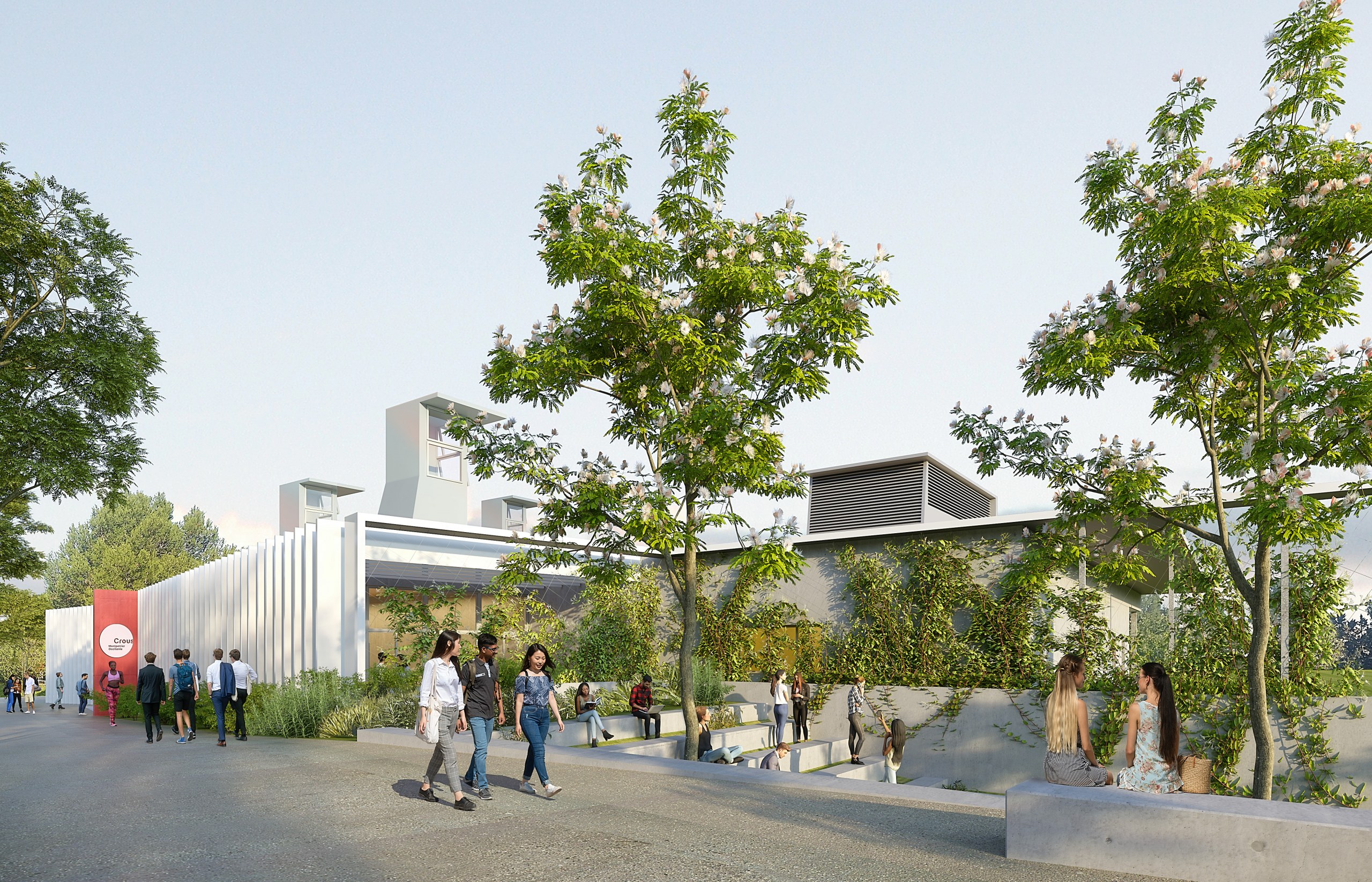 L’objet architectural expressif est inséré dans un écrin de verdure pour offrir un cadre de grande qualité qui veille au bien être des utilisateurs.